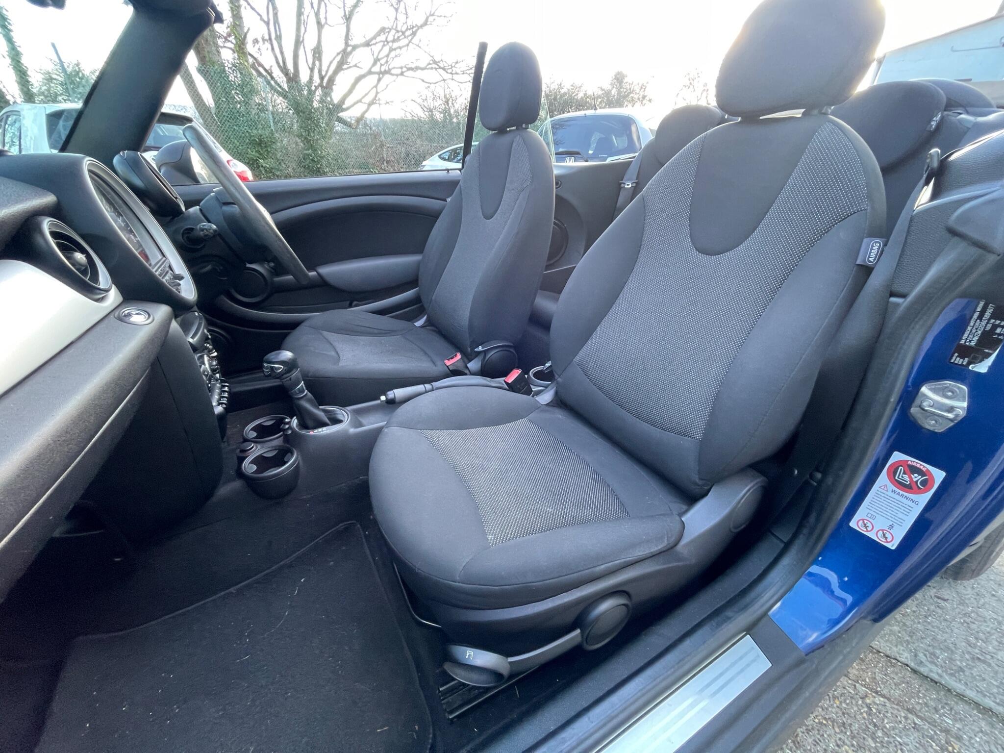 Finished in striking Lightning Blue metallic, this MINI One Convertible 1.6 Automatic has covered 77,866 miles and offers a rare opportunity to own a ULEZ-compliant automatic convertible just in time for the warmer months. With its fully automatic electric soft-top roof you can enjoy open-air motoring at the touch of a button while retaining the unmistakable MINI styling and character that make these cars so popular. This example benefits from an exceptional service record with 11 services at 5k, 7k, 9k, 10k, 14k, 21k, 42k, 44k, 52k, 62k and most recently just 3k miles ago at 74,866 miles. It benefits from an MOT to February 2027.MINI’s famous go-kart handling makes the Convertible every bit as fun to drive as it looks, with sharp steering, excellent balance and the relaxed ease of an automatic gearbox making it equally enjoyable around town or out on the open road. Finished with a black fully automatic soft-top and Carbon Black interior with Cosmos cloth upholstery, the cabin is simple, stylish and surprisingly practical for everyday use, while the compact footprint makes it easy to manoeuvre and park.Specification includes rear Park Distance Control, air conditioning, DAB digital radio, MINI Boost CD audio system, Bluetooth hands-free connectivity, AUX input, heated electrically adjustable door mirrors, remote alarm system, tyre pressure monitoring, automatic stability control and traction, brake energy regeneration, daytime running lights and ISOFIX child seat points. Supplied with 15in wheels and recently fitted with four brand new tyres less than 300 miles ago.Low rate finance options available subject to status from just 8.9%, apply today. £450 admin fee applies for using your own finance company – try us first. Complete with 2 keys and can be secured with a non-returnable reservation fee of £100, which takes it off sale for 3 days. We offer UK delivery and strong part exchange prices. Read our 330+ reviews across Google and AutoTrader and find out why we were crowned the UK’s Best Car Dealer at the 2024 CarDealer Magazine Awards. Watch the HD video