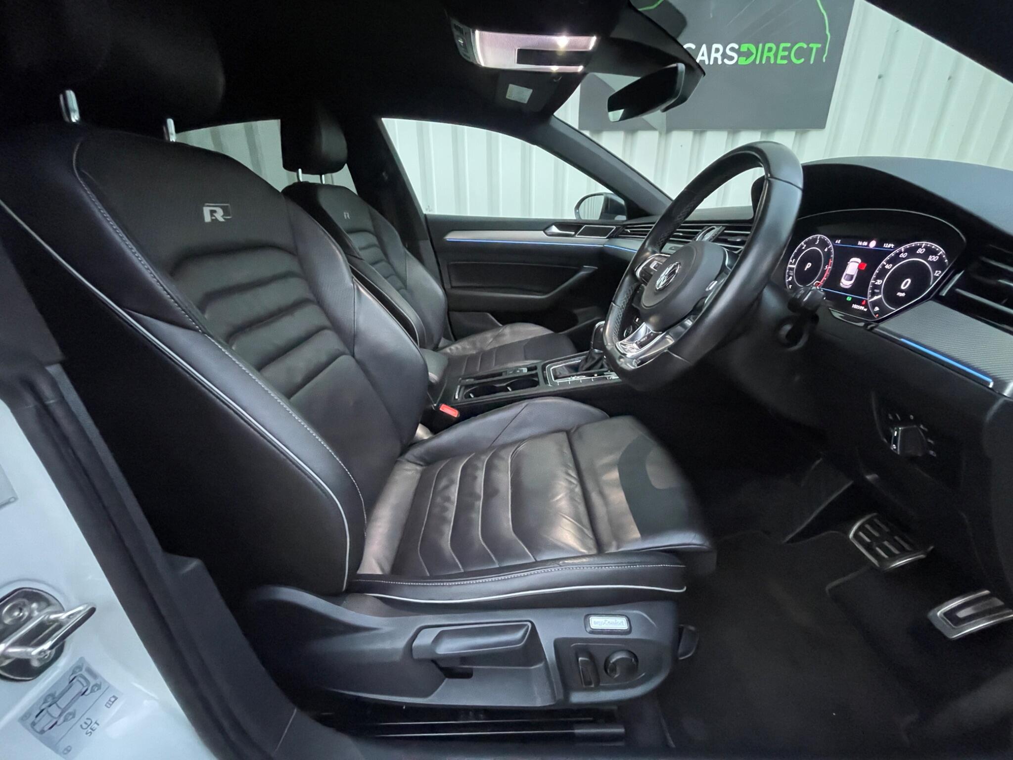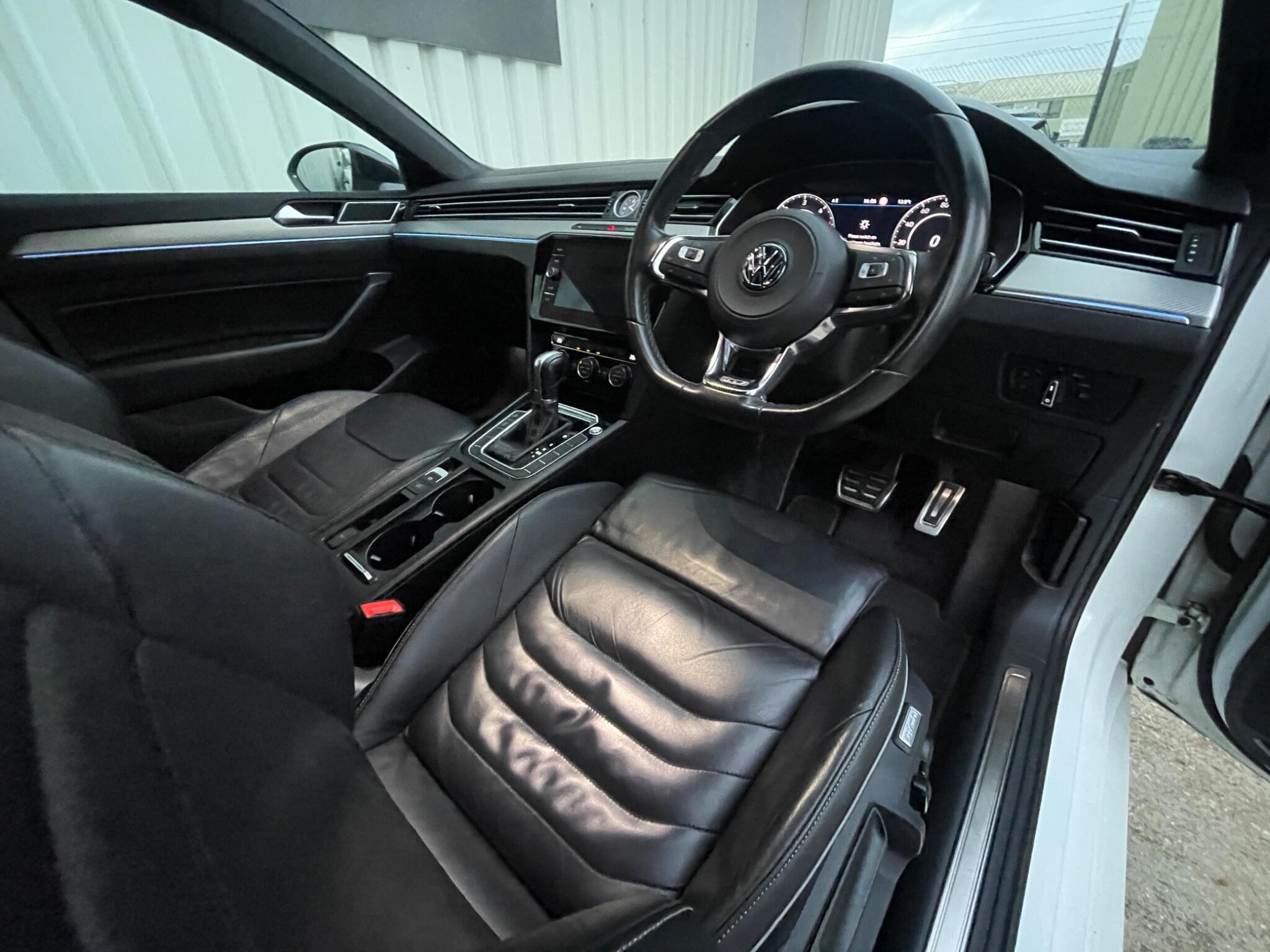 Presenting this sleek and stylish Arteon 2.0 TDI R-Line Fastback DSG finished in Pure White metallic, a colour that shows off the Arteon’s sharp lines and premium presence perfectly. It's as versatile as it is good looking, plus it has a strong service history – maintained at 17k, 36k, 74k, 84k (including the DSG service) and has just been serviced within the last 20 miles. It also comes with a long MOT until June 2026 with NO advisories, so it’s ready to drive away. Expect the usual R-Line enhancements too: heated front leather seats, sports styling, larger alloys, ambient lighting, touchscreen infotainment, digital cockpit, Bluetooth, parking sensors, adaptive cruise control and LED lighting. It’s a refined, confident cruiser with performance and impressive fuel economy thanks to the ULEZ compliant Euro 6 2.0 TDI engine. .Step inside and you’re welcomed by a full leather interior with heated front seats – perfect for frosty starts or simply adding a touch of luxury to the daily commute.The R-Line trim brings all the kit you’d hope for, a slick digital cockpit that puts key info right in your eyeline, a crisp touchscreen infotainment system with Bluetooth for seamless calls and music, plus ambient lighting to set the mood on evening drives. Out on the road, adaptive cruise control takes the strain out of motorway miles by keeping you effortlessly paced with traffic, while front and rear parking sensors make tight spaces and parallel parking far less dramatic. Low rate finance options available subject to status from just 8.9%, apply today. £450 admin fee applies but ONLY if using your own finance company/broker such as CF247, Zuto, CarMoney etc – try us first. Complete with 2 keys and can be secured with a non-returnable reservation fee of £100, which takes it off sale for 3 days. We offer UK delivery and strong part exchange prices. Read our 330+ reviews across Google and AutoTrader and find out why we were crowned the UK’s Best Car Dealer AND best use of video at the CarDealer Magazine Awards. Watch the HD video before enquiring. We are fixed price