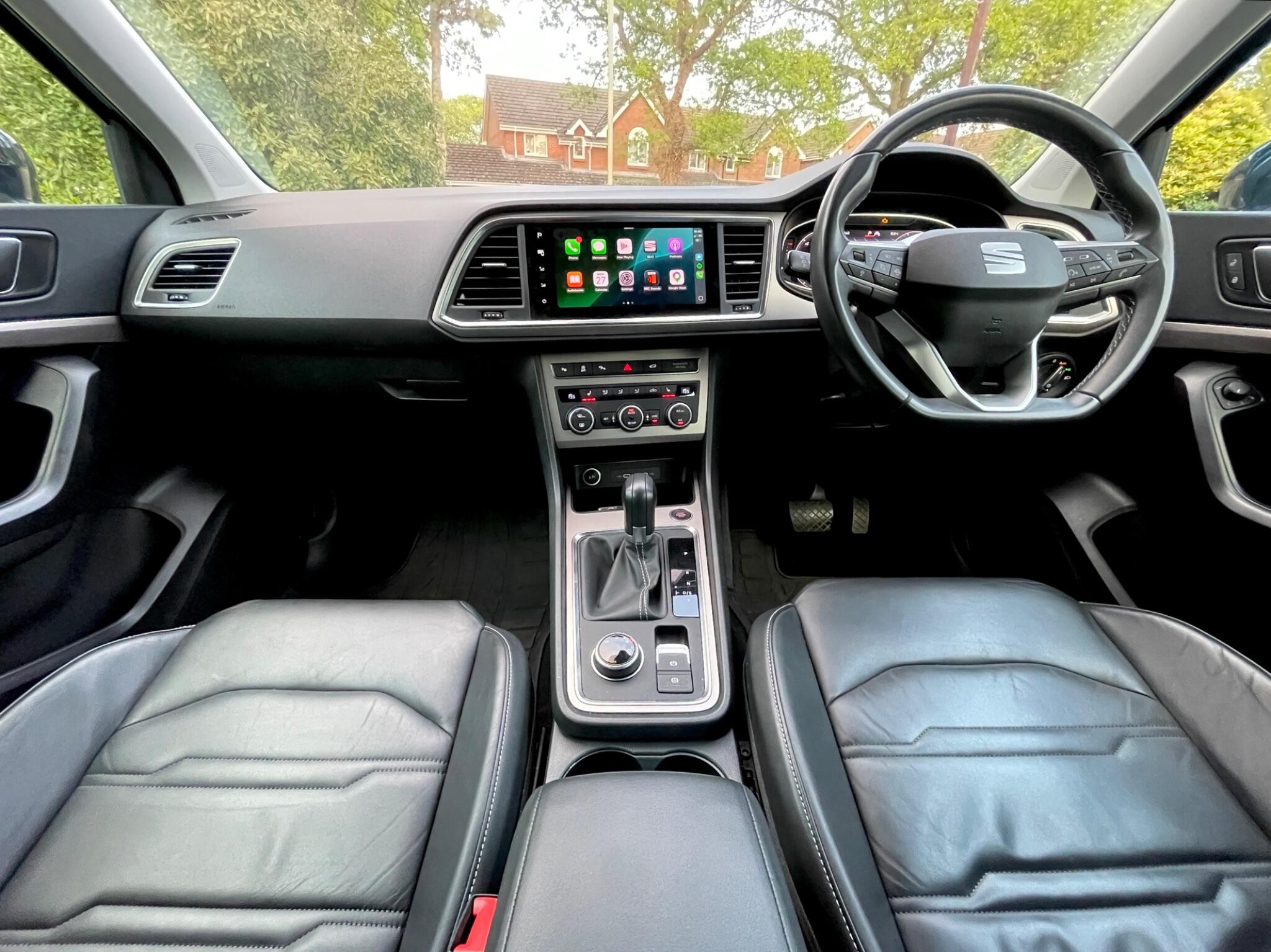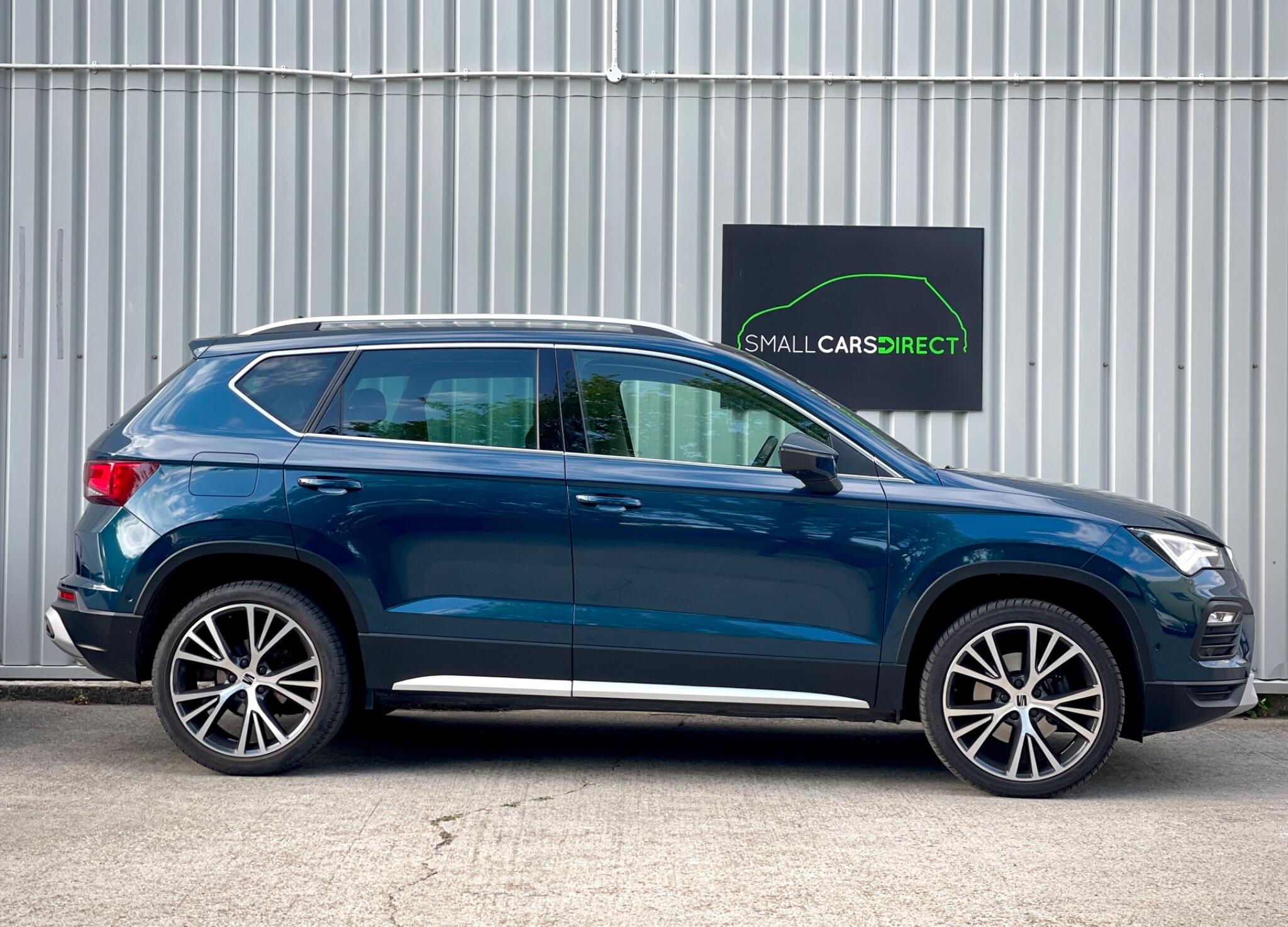 This 2021 SEAT Ateca 1.5 TSI EVO XPERIENCE Lux DSG in standout Lava Blue is a seriously high-spec example with just 21,096 miles, 2 owners, 2 keys and a strong service record. Combining punchy yet efficient performance with smooth DSG automatic gearbox, this range-topping XPERIENCE Lux delivers premium feel and everyday usability in equal measure. Serviced at 6k, 10k, 15k and most recently less than 400 miles ago at 20k, MOT until April 2027.Loaded with desirable spec, this example features full black heated leather sports seats, wireless Apple CarPlay, wireless phone charging, navigation, digital cockpit and keyless entry and go. You also benefit from Park Assist with self-parking, rear view camera and Top View Camera with 360 degree view, electric tailgate with virtual pedal, heated windscreen, dual zone climate control and full LED headlights, making it as easy to use as it is well equipped.Further enhanced by the Safe and Driving Pack, this car includes Blind Spot Assistance and Adaptive Cruise Control for added reassurance on longer journeys. The 1.5 TSI EVO engine offers an excellent balance of performance and efficiency, paired perfectly with the DSG gearbox for smooth, effortless driving. Running costs remain sensible too, with just £200 annual road tax and insurance group 19 out of 50. It also looks the part with 19in Exclusive Machined alloys, dark tinted rear glass, chrome roof rails and sharp LED lighting.We offer excellent finance rates from 8.9% APR - apply now at smallcarsdirect.co.uk for an instant decision. Please watch the HD video before enquiring and read our 350+ reviews to see why we are multi-award winners, Crowned as the UK’s Best Car Dealer 2024, Best Use of Video 2025 and best New Forest Micro Business 2025. Top prices paid for part exchange high quality, well specified vehicles, a £450 admin fee applies if using your own finance broker – try us first, we cater for all credit profiles so try us first, we are fixed price.