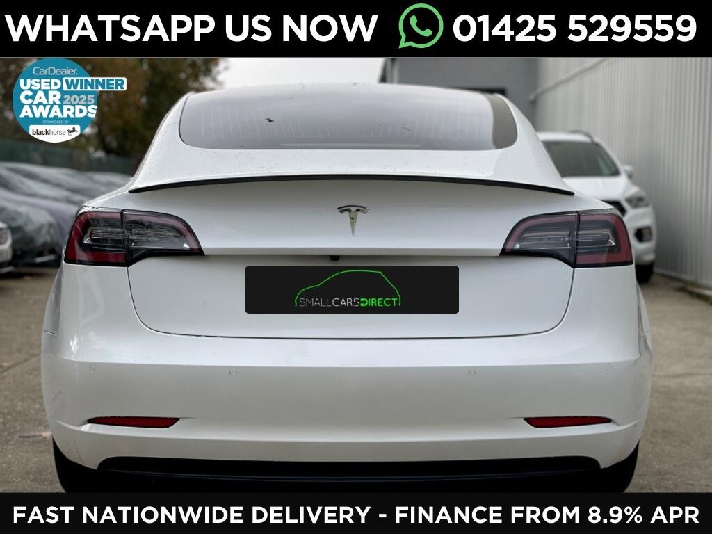 with low rate finance from 8.9% with instant pre-approval available you could be experiencing the future of performance, luxury motoring sooner than you think with this stunning pearl white Model 3. It is ready to go and has the option of the aero wheel covers or exposed anthracite grey alloys. Boasting impressive charging capabilities. When using a 7kW home charger, a full charge can be achieved in approximately 7 hours.For those needing a quicker charge while on the go, rapid public charging can take the battery from empty to 80% in as little as 29 minutes. Its battery provides a maximum range of 254 miles - when new, meaning you can enjoy longer journeys with fewer stop. To put its efficiency into perspective, a 0–80% home charge costs around £11 (6p per mile). An equivalent petrol BMW 330i costs 17p per mile, its party trick of accelerating from 0 to 60 mph in just 5.3 seconds is mind blowing. It comes supplied with a min. of x1 charging cable, and can simply be charged on a standard UK 3 pin socket with the relevant cable.If any of this jargon is new to you, call us, we are here to help and make your foray into the world of EV as seamless as possible. It's NO advisory MOT is valid to September 2026, and comes with the benefit of its battery warranty which remains in place until 2028 or 100,000 miles, whichever comes first. Inside you are treated to a minimalist yet luxurious interior featuring premium vegan leather seats, glass roof, and a large touchscreen that is very user friendly, the sound system is crisp and immersive, making every journey an auditory delightWe offer excellent finance rates from 8.9% APR – apply now at smallcarsdirect.co.uk for an instant decision. Watch the HD video before enquiring and read our 350+ reviews to see why we were crowned UK’s Best Car Dealer 2024. Top prices paid for high quality part exchange vehicles. A £360 admin fee applies if using your own finance broker – try us first, time from application to driving away can be as little as 30 minutes, we are fixed price. We deliver nationwide so get in touch for a quote